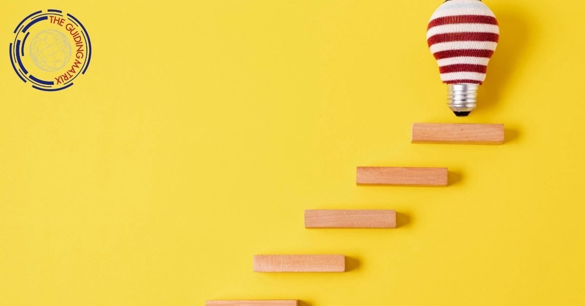 Image of Steps leading upward toward a covered lightbulb. by The Guiding Matrix